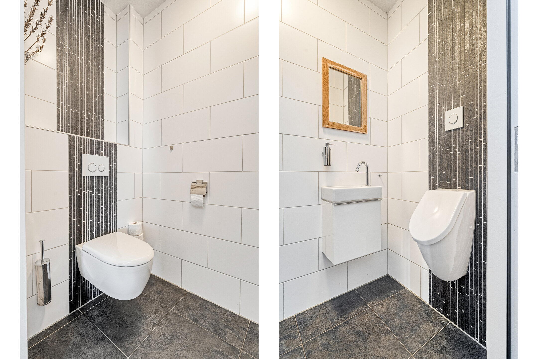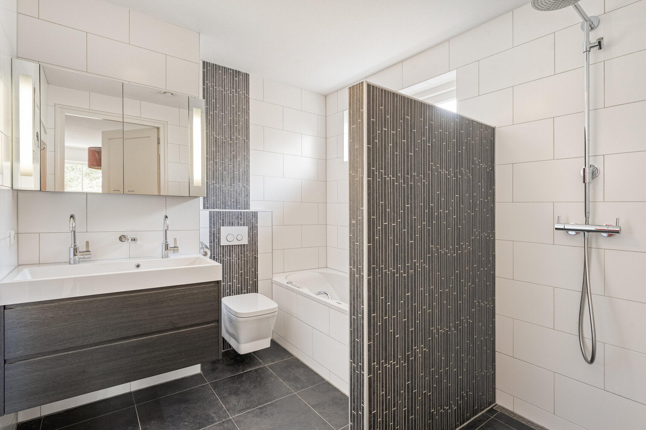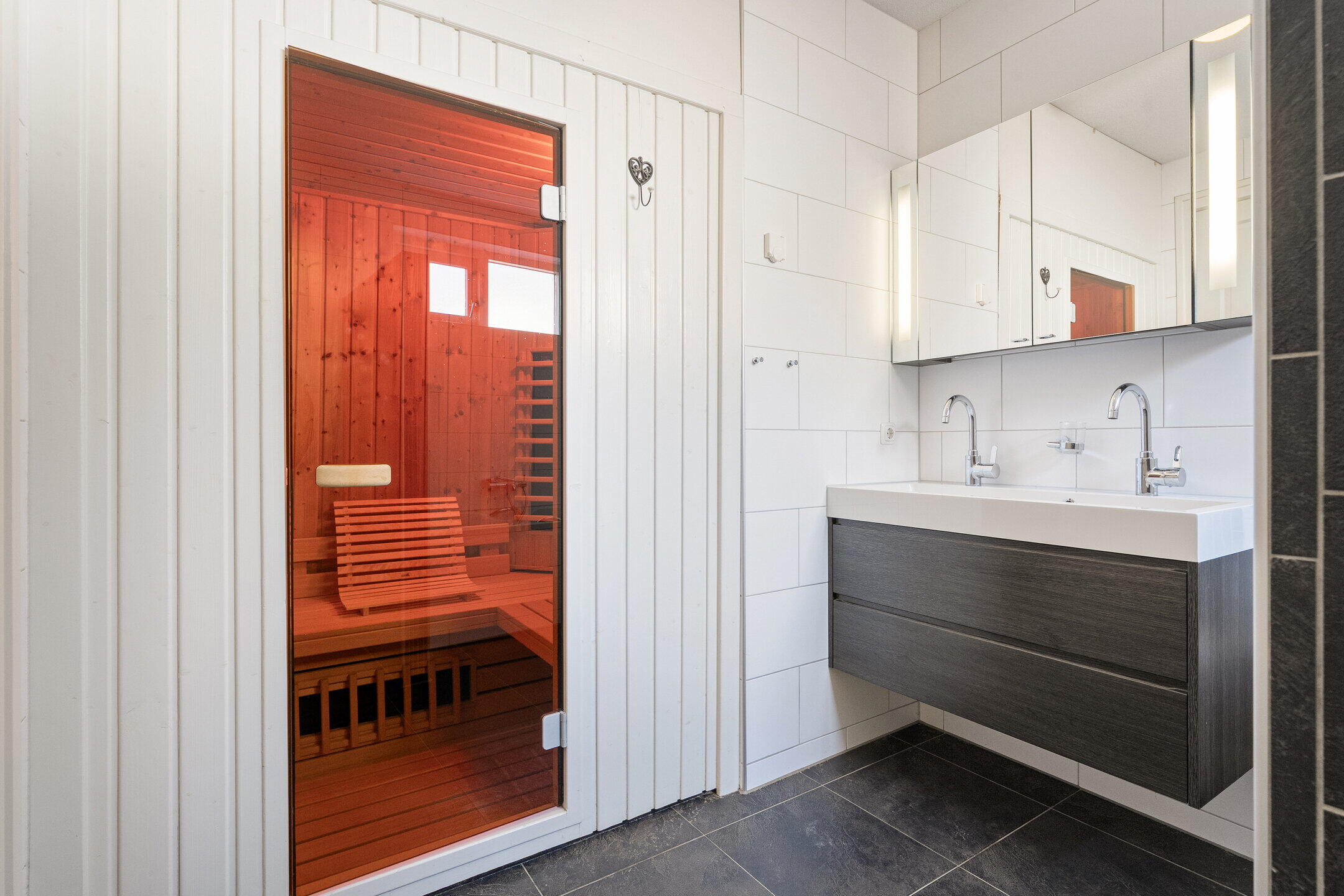 - Toilet, dubbele wastafel, inloopdouche, whirlpool, sauna toilet, douche
